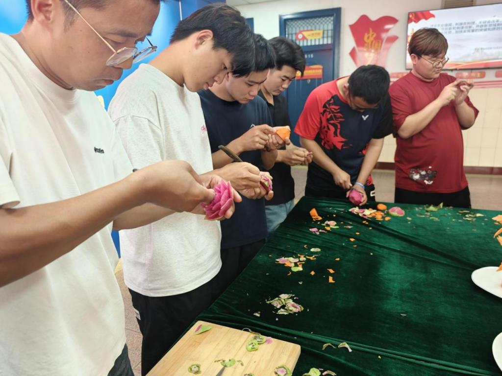 本次活动精心打造了三大特色板块,为师生们倾力呈现了一场沉浸式的雕刻艺术盛宴,令他们在艺术的海洋中尽情遨游,感受雕刻艺术的独特魅力。理论讲解环节中,行业资深雕刻艺术家化身“文化使者”,以通俗易懂的语言,生动讲述雕刻艺术的千年传承脉络、多元流派风格及精湛技艺体系,让学生们对这门传统艺术有了系统性认知;现场演示环节令人目不暇接,萝卜雕的精巧、萝卜雕的细腻、萝卜雕的奇绝轮番上阵。雕刻师以行云流水的刀法、别具匠心的构思,在各种颜色的萝卜间穿梭游走,忽而刀锋一转,牡丹花瓣层叠舒展,栩栩如生。每一件诞生于刀下的作品,都似被赋予了生命,引得在场师生屏息凝视,待佳作完成,热烈的赞叹与如雷掌声顿时响彻全场;实践操作环节则成为学生们展现创意的舞台,在雕刻师的悉心指导下,同学们手持刻刀,专注地在萝卜雕刻材料上勾勒线条、雕琢形态。尽管作品稍显稚嫩,但每一件都饱含着创作者的热情与匠心,充分展现出青春的无限创造力。