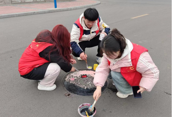 在永利集团校公路上,土建志愿者们身穿红色志愿者马甲,手拿绘画工具,游走在校园之间,顺着他们的足迹走下去就会发现,校园中的井盖都变成了“景盖”,土建志愿者们以井盖为布、青春为笔让平日里并不引人注目的井盖从此刻开始披上了宣传“雷锋精神”的外衣,以绘画作品的形式向全校师生传递“学雷锋,好榜样”的青春正能量。